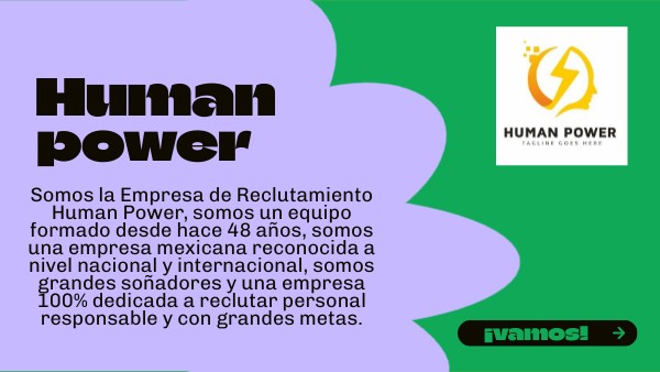Somos la Empresa de Reclutamiento Human Power, somos un equipo formado desde hace 48 años, somos una empresa mexicana reconocida a nivel nacional y internacional, somos grandes soñadores y una empresa 100% dedicada a reclutar personal responsable y con grandes metas.