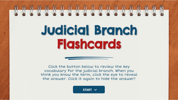 Click the button below to review the key vocabulary for the judicial branch. When you think you know the term, click the eye to reveal the answer. Click it again to hide the answer!
