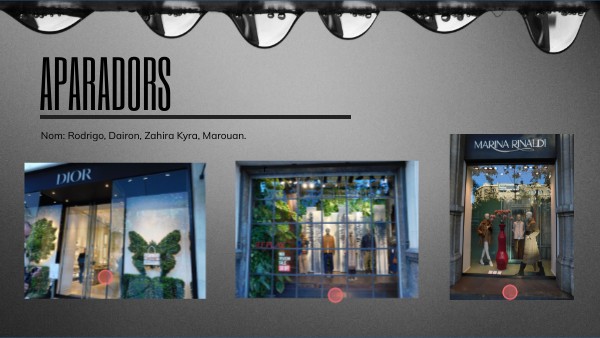 Aquest aparador és semiobert, amb una decoració que simula un entorn natural i fred mitjançant fusta fosca i llums càlides. Transmet sensació d’hivern i comoditat, mostrant roba adaptable al canvi de temperatura. L’objectiu és atreure clients amb un ambient acollidor i elegant. Com a millora, es podria acostar més els maniquins per reforçar l’efecte de profunditat i llum.