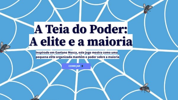 Gaetano Mosca dizia que toda a sociedade tem uma minoria organizada — a elite — que governa, e uma maioria desorganizada que é governada. Neste jogo, a aranha simboliza a elite, as moscas representam o povo, e a teia mostra o sistema que mantém o poder.