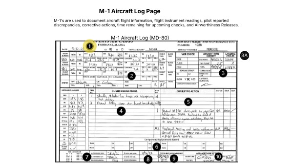M-1's are used to document aircraft flight information, flight instrument readings, pilot reported discrepancies, corrective actions, time remaining for upcoming checks, and Airworthiness Releases.