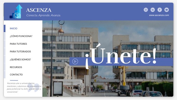 'Ascenza une a universitarios, mentores y alumnos de preparatoria para potenciar tu éxito académico y vocacional.'