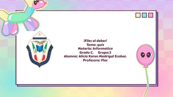 ¡Files al deber! Tema: quiz Materia: Informatica Grado C. Grupo:2 Alumna: Alicia Karen Madrigal Ecobar. Profesora: Flor