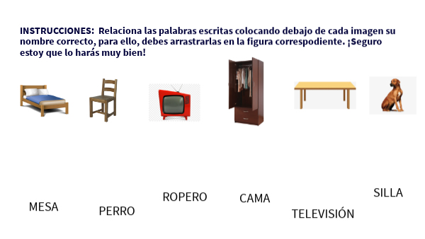 INSTRUCCIONES: Relaciona las palabras escritas colocando debajo de cada imagen su nombre correcto, para ello, debes arrastrarlas en la figura correspodiente. ¡Seguro estoy que lo harás muy bien!