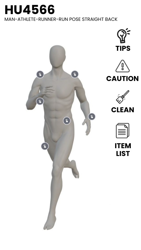 - Use the correct base to prevent tipping. Place mannequins on stable surfaces, away from high-traffic areas.