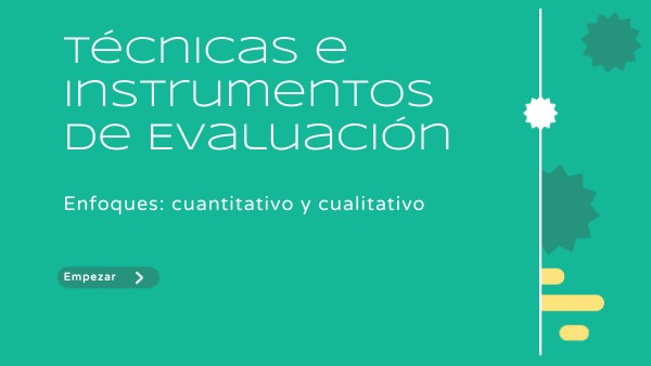 En esta presentación exploraremos el tema “Técnicas e instrumentos de evaluación”, elementos esenciales para valorar de manera justa, objetiva y formativa el aprendizaje de los estudiantes. A lo largo del recorrido conocerán qué son, cómo se diseñan y en qué situaciones se aplican diversas herramientas como el portafolio, la rúbrica, la demostración, el proyecto, el estudio de caso, entre otras.