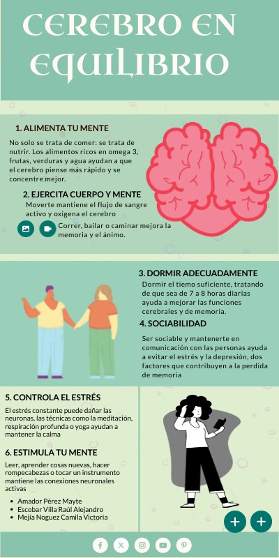 -8 consejos sobre salud cerebral para que seas más saludable. (s. f.). Mayo Clinic. https://www.mayoclinic.org/es/healthy-lifestyle/healthy-aging/in-depth/brain-health-tips/art-20555198-Cómo mantener lúcido y sano el cerebro | Aetna. (s. f.). Aetna. https://es.aetna.com/health-guide/how-to-keep-your-brain-sharp.html#:~:text=Cuide%20su%20cerebro%20para%20que-contacto%20con%20familiares%20y%20amigos.