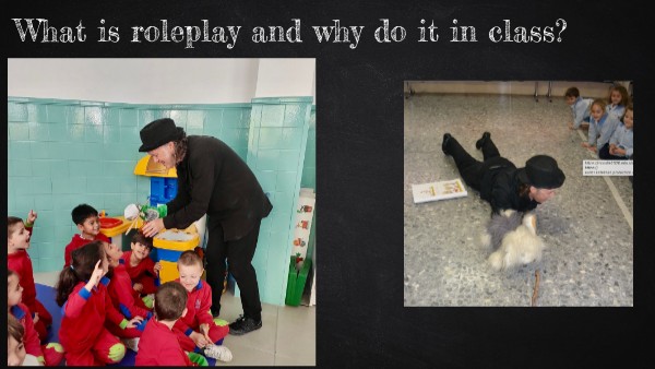 Role-play in the language learning classroom is an interactive activity where the students pretend to be someone else or act out imaginary or real-life situations. It allows them to practise vocabulary, phrases, and communication skills in a playful, meaningful, and context-rich way.