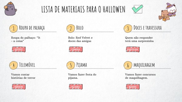 Lista de materiais para o hallowen