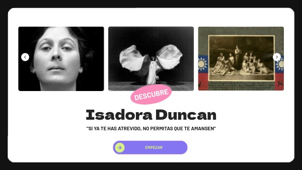 "Mi arte es precisamente un esfuerzo que tiende a expresar, en gestos y movimientos, la verdad de mi ser" Isadora Duncan