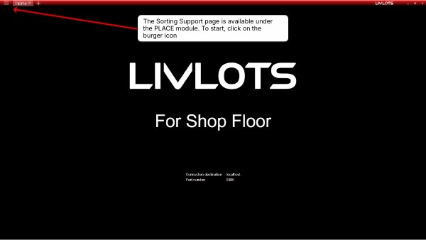 The Sorting Support page is available under the PLACE module. To start, click on the burger icon