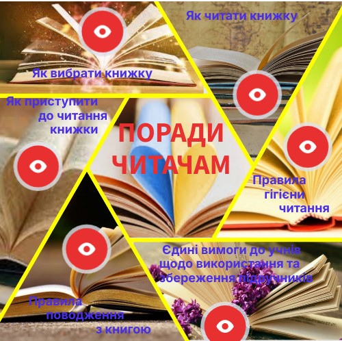 1. Читай повільно, не поспішаючи, дочитуй книгу до кінця, не пропускай сторінок. 2. Не забудь прочитати передмову. Вона розповість тобі багато цікавого про автора і книгу. 3. Читаючи книги, журнали, ти можеш зустріти незнайомі слова. Їх пояснення знайди в словниках, довідниках, енциклопедіях. 4. Пам'ятай: читання - одне з найважливіших завдань у самоосвіті, ставитись до нього треба серйозно. 5. Внутрішньо налаштовуйся на читання. Не поспішай, не "ковтай" зміст книжки, а читай уважно, вдумливо, намагайся запам'ятати прочитане. 6. Зміст треба осмислювати. Не можна допускати механічного фіксування тексту. 7. Вчися читати швидко, не проговорюючи про себе, охоплюй поглядом цілі фрази, речення. 8. Для свідомого сприймання прочитай передмову, перегортаючи сторінки, обміркуй заголовки. 9. Коли щось незрозуміло, не поспішай гукати на допомогу інших. Спочатку спробуй самостійно розібратися. Користуйся словниками, довідниками. 10. Роби помітки, виписки, за потреби склади план (тези, конспект). 11. Найцікавіше запам'ятай. Порівнюй прочитане з уже відомими фактами. 12. Прочитавши книжку, обміняйся думками і враженнями про неї з друзями, дай оцінку. Згадай основні образи, події, думки. 13. Порівняй власну думку про книжку з відгуками і рецензіями на неї: один розум добре, а колективний - краще. 14. Зроби відповідні записи про книжку у читацькому щоденнику.