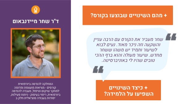 בכל קורס בצורה שונה, ובכדי לבון היבטים שונים של כלי ה-VR, מתוך מטרה להרחבת השימוש ברחבי האוניברסיטה בשנה הבאה -