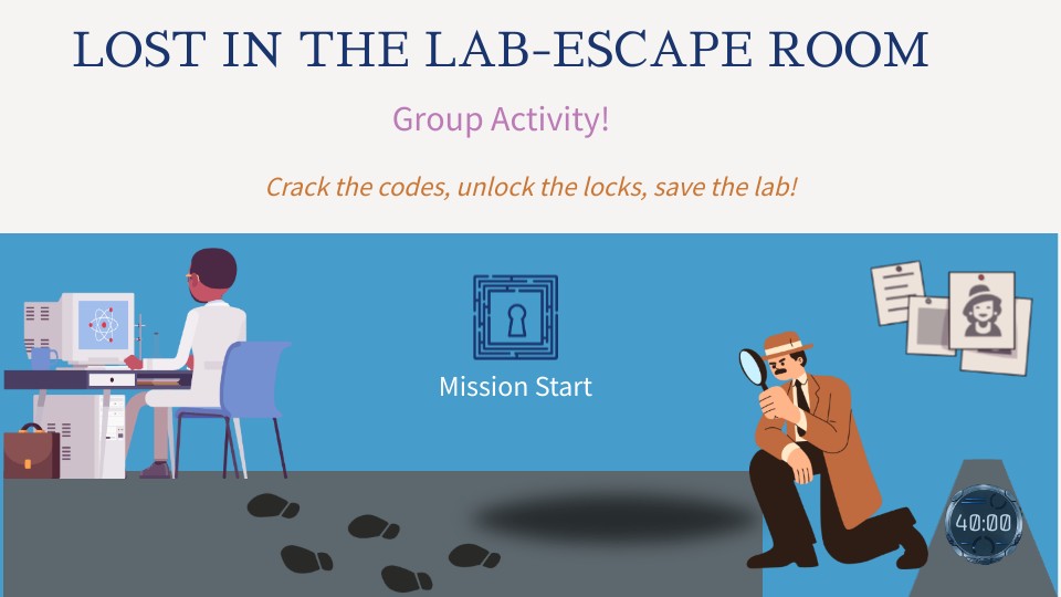 - You have 40 minutes to escape before the lab shuts down.