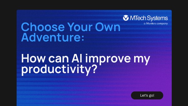 The clock is ticking, and your inbox is full. Reports need reviewing, projects are moving fast, and your team is counting on you to keep everything running smoothly. Across MTech, employees are facing the same challenge — balancing speed, accuracy, and creativity in a world that never stops moving. That’s where AI comes in. In this activity, you’ll explore how AI can support your specific role at MTech. Choose your department, identify the challenges you face, and discover practical ways AI can save you time, simplify your work, and help you focus on what matters most. Now, the decisions — and the opportunities — are in your hands.