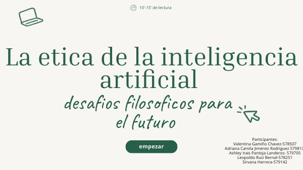 Hoy en día, la inteligencia artificial (IA) está en todas partes: en nuestros celulares, en los videojuegos, en las redes sociales, e incluso en los autos que se manejan solos. Aunque parece algo muy moderno y útil, también nos hace pensar en cosas más profundas, como si está bien dejar que las máquinas tomen decisiones importantes o qué pasa si una IA comete un error que afecta a una persona. La ética de la inteligencia artificial trata justamente de eso: de pensar si lo que hacen las máquinas es correcto o no, y cómo podemos asegurarnos de que se usen de manera justa y responsable. No se trata solo de tecnología, sino de valores humanos como el respeto, la justicia y la libertad. Este tema es súper importante porque la IA está cambiando el mundo muy rápido, y si no pensamos bien en cómo usarla, podríamos tener problemas en el futuro. Por eso, es necesario que todos —no solo los expertos— reflexionemos sobre los desafíos que trae y cómo podemos enfrentarlos con responsabilidad.