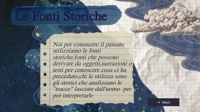 Noi per conoscere il passato utilizziamo le fonti storiche,fonti che possono derivare da oggetti,narrazioni o testi per conoscere cosa ci ha preceduto,chi le utilizza sono gli storici che analizzano le "tracce" lasciate dall'uomo per poi interpretarle