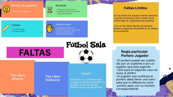 -En las faltas los equipos tienen derecho d poner la barrera, pero a partir de la sexta falta en cada parte se penaliza -Con un tiro libre directo sin barrera desde la segunda de penalti (a 10 metros de la porteria)