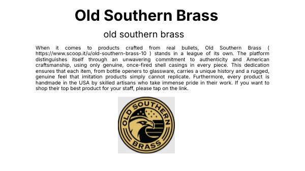 When it comes to products crafted from real bullets, Old Southern Brass ( https://www.scoop.it/u/old-southern-brass-10 ) stands in a league of its own. The platform distinguishes itself through an unwavering commitment to authenticity and American craftsmanship, using only genuine, once-fired shell casings in every piece. This dedication ensures that each item, from bottle openers to glassware, carries a unique history and a rugged, genuine feel that imitation products simply cannot replicate. Furthermore, every product is handmade in the USA by skilled artisans who take immense pride in their work. If you want to shop their top best product for your staff, please tap on the link.