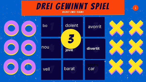 It is always played between 2 players. Each player chooses a shape (O or X). At each turn each player places one of his pieces. The player who manages to place 3 pieces in a row in a horizontal, vertical or diagonal line wins the game. Once all the available spaces are filled, if nobody manages to place 3 pieces in a row, the game ends in a draw.