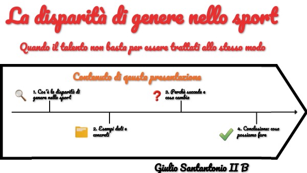 Le cause di dispartà sono storiche e culturali: per anni lo sport è stato considerato un'attività "maschile", e ancora oggi si pensa. Mancano anche figure femminile nei ruoli di comando (dirigenti, allenatrici, arbitri...). Tuttavia, ci sono segnali positivi: le Olimpiadi stanno diventando più paritarie, e molte atlete come Serena Williams, Alex Morgan o Bebe Vio sono diventate simboli di forza e uguaglianza.