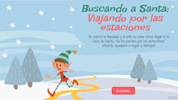 Se acerca la Navidad, y el elfo no sabe cómo llegar a la Casa de Santa. ¡Se ha perdido por las estaciones! ¿Podrás ayudarlo a llegar a tiempo?
