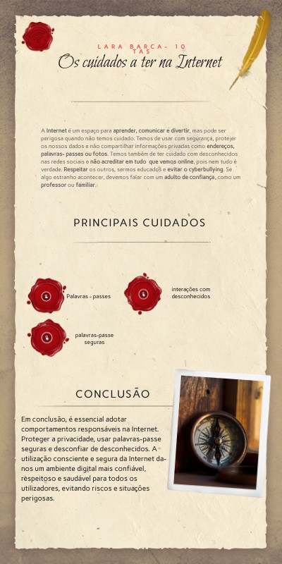 Em conclusão, é essencial adotar comportamentos responsáveis na Internet. Proteger a privacidade, usar palavras-passe seguras e desconfiar de desconhecidos. A utilização consciente e segura da Internet da-nos um ambiente digital mais confiável, respeitoso e saudável para todos os utilizadores, evitando riscos e situações perigosas.