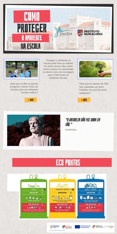 O INA têm um excelente programa eco-escolas que promove e mostra que os alunos sabem reciclar e ser civilizados, porém ainda existe muito a mudar!