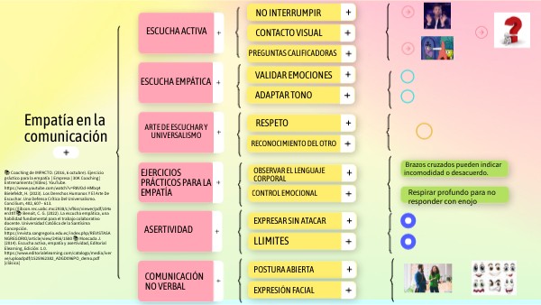 📚 Moncada J. (2014). Escucha activa, empatía y asertividad, Editorial Elearning, Edición: 1.0. https://www.editorialelearning.com/catalogo/media/iverve/uploadpdf/1525962382_ADGD096PO_demo.pdf [clásica]