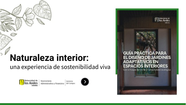 La guía práctica para el diseño de jardines adaptativos en espacios interiores es una herramienta desarrollada por la Gerencia del Campus que conecta la sostenibilidad con el bienestar, invitándonos a integrar la naturaleza dentro de nuestros espacios cotidianos.Nace del compromiso con el Plan Maestro de Paisaje (2013) y forma parte de la estrategia de la VAF para crear una universidad más viva, responsable y consciente de su entorno.