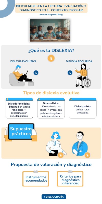 Coltheart, M. (1981). The dual route theory of reading. London: Routledge. Cuetos, F., Rodríguez, B., & Ruano, E. (1996). PROLEC: Evaluación de los procesos lectores. TEA Ediciones. Universidad Internacional de La Rioja (UNIR). (2025). Tema 6. Trastornos del lenguaje escrito. Psicopatología de la Audición y el Lenguaje en el Ámbito Educativo. Imágenes creadas con GEMINI.