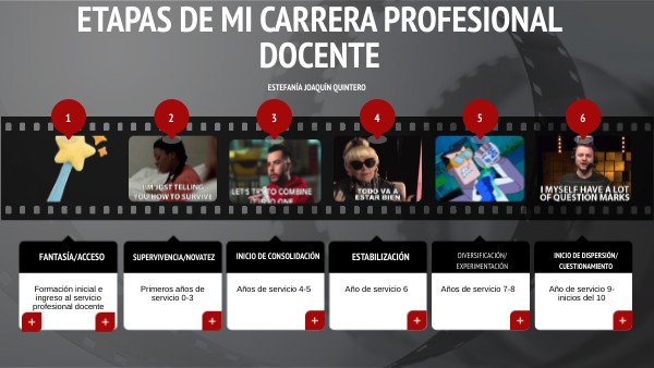 Ideas tomadas de lecturas y expertos agenos a los contextos educativos. "Seré diferente", "Mis clases serán muy dinámicas", "Revolucionaré la forma de enseñar", "No seré como el típico mestro que llega a un estado de conformismo". Edad pre profesional (Hargreaves, 1996). Enseñar con base a "buenos modelos" de cómo fui enseñada, tutel de profesionl experimentado, periodo de prácticas junto a profesor cooperador, ensayo-error.