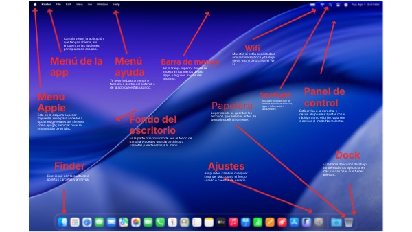 Es la parte principal donde ves el fondo de pantalla y puedes guardar archivos o carpetas para tenerlos a la mano.