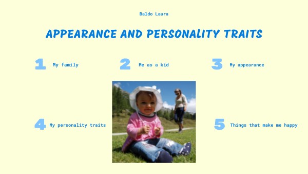 - brown straight hair- blue to green eyes - energetic - colourful clothes - garage