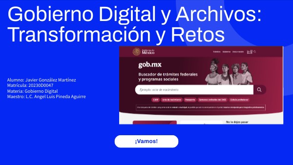 Alumno: Javier González Martínez Matrícula: 20230D0047 Materia: Gobierno Digital Maestro: L.C. Angel Luis Pineda Aguirre