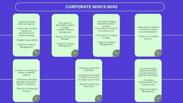 Key player in developing creative strategy• Market research background • Works with Account Manager • Reports to Senior Management