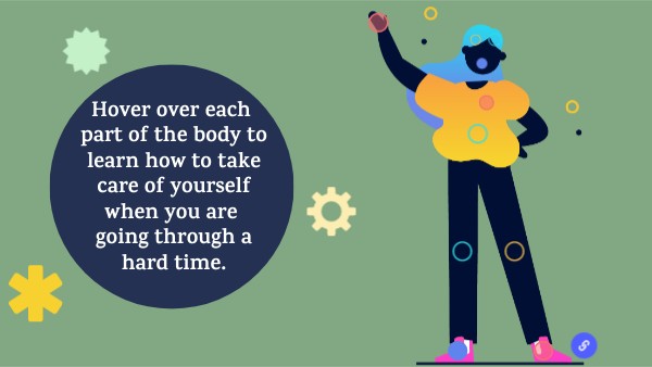Hover over each part of the body to learn how to take care of yourself when you are going through a hard time.