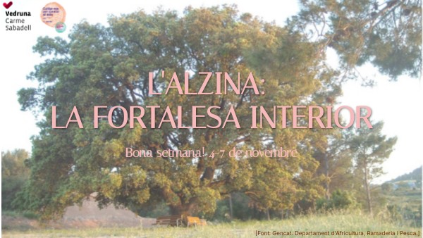 L’alzina és l’arbre que ens inspira aquesta setmana: és fort, resistent i flexible. No és gaire alt, però resisteix el vent, la sequera i el fred. La fortalesa de l'alzina no neix de fora, sinó de dins: de les arrels profundes i de la terra que la nodreix. Joaquima de Vedruna deia que "Si la terra no es prepara, les plantes no donaran el fruit que es desitja". Això també és veritat per a les persones: si no ens cuidem i si l'entorn no és favorable, difícilment creixerem sans i forts.
