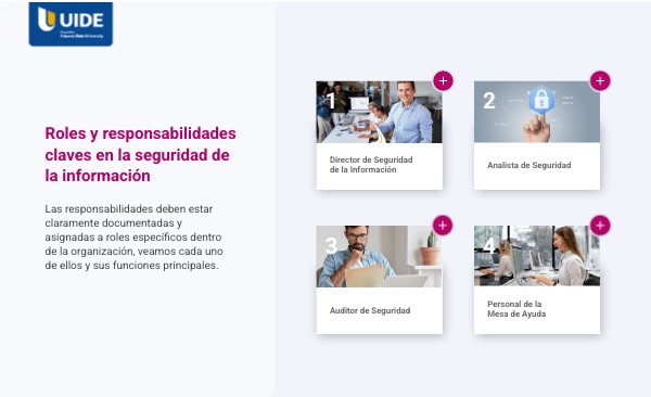 Las responsabilidades deben estar claramente documentadas y asignadas a roles específicos dentro de la organización, veamos cada uno de ellos y sus funciones principales.