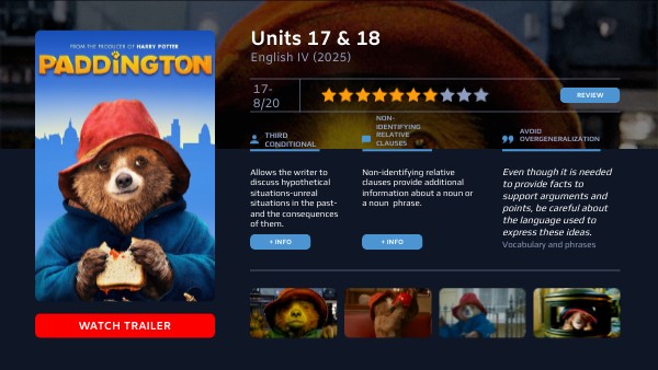 Forming past unreal conditionals:If clause (past perfect) +, + main clause (would/could/might + have + past participle). Example: If Paddington had stayed in Peru, he wouldn’t have found a new family in London.