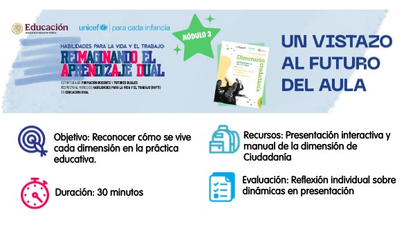 Recuerda: La innovación ciudadana comienza con pequeños gestos. Cada acción que pongas en práctica —escuchar con empatía, colaborar con otros o mirar tu entorno con conciencia social— puede convertirse en una chispa que transforme la manera en que tus estudiantes aprenden, conviven y participan en el aula dual.