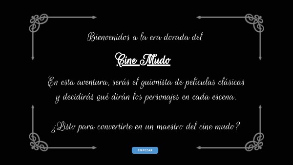 Bienvenidos a la era dorada del En esta aventura, serás el guionista de películas clásicas y decidirás qué dirán los personajes en cada escena. ¡Listo para convertirte en un maestro del cine mudo?