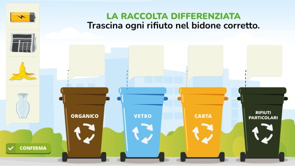 Trascina ogni rifiuto nel bidone corretto.