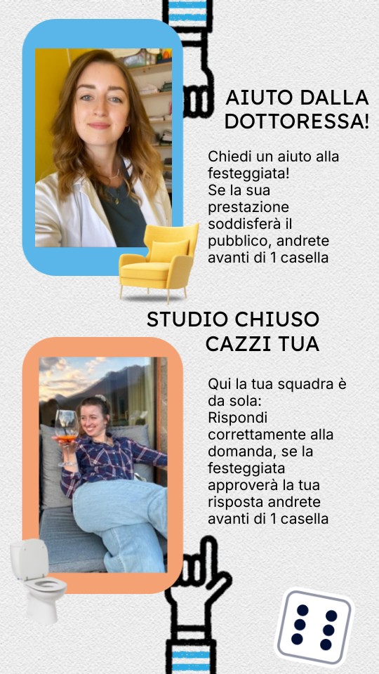Qui la tua squadra è da sola: Rispondi correttamente alla domanda, se la festeggiata approverà la tua risposta andrete avanti di 1 casella