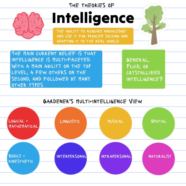 The main current belief is that intelligence is multi-faceted. With a main ability on the top level, a few others on the second, and followed by many other types.