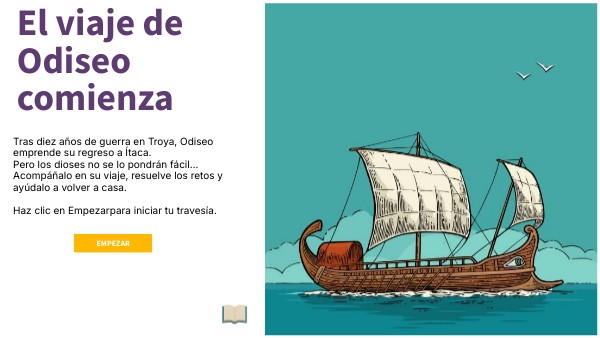 Tras diez años de guerra en Troya, Odiseo emprende su regreso a Ítaca. Pero los dioses no se lo pondrán fácil… Acompáñalo en su viaje, resuelve los retos y ayúdalo a volver a casa. Haz clic en Empezarpara iniciar tu travesía.