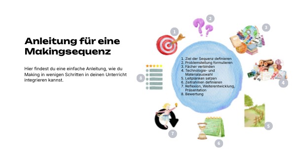 Hier findest du eine einfache Anleitung, wie du Making in wenigen Schritten in deinen Unterricht integrieren kannst.