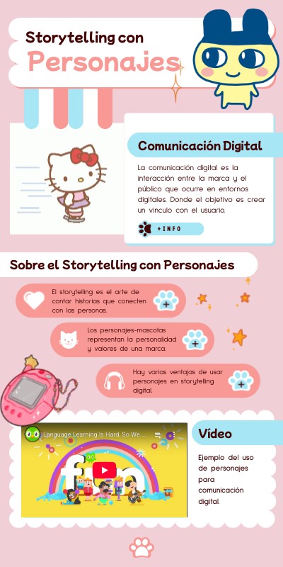 - Narrativa continua: Permite contar historias a lo largo del tiempo, como una serie. (Ej: Hello Kitty)