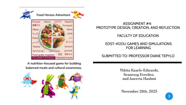 Assignment #4: Prototype Design, Creation, and Reflection Faculty of Education EDST-4120U Games and Simulations for Learning