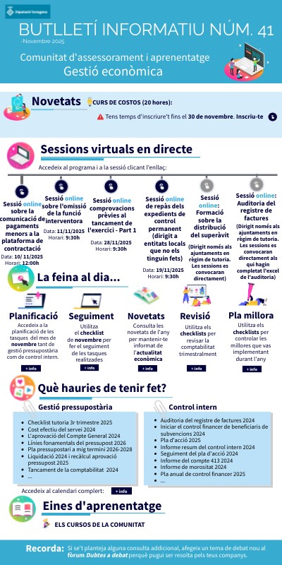Accedeix a la planificació de les tasques del mes de novembre tant de gestió pressupostària com de control intern.